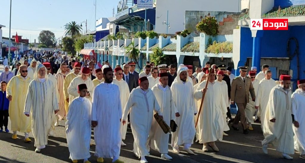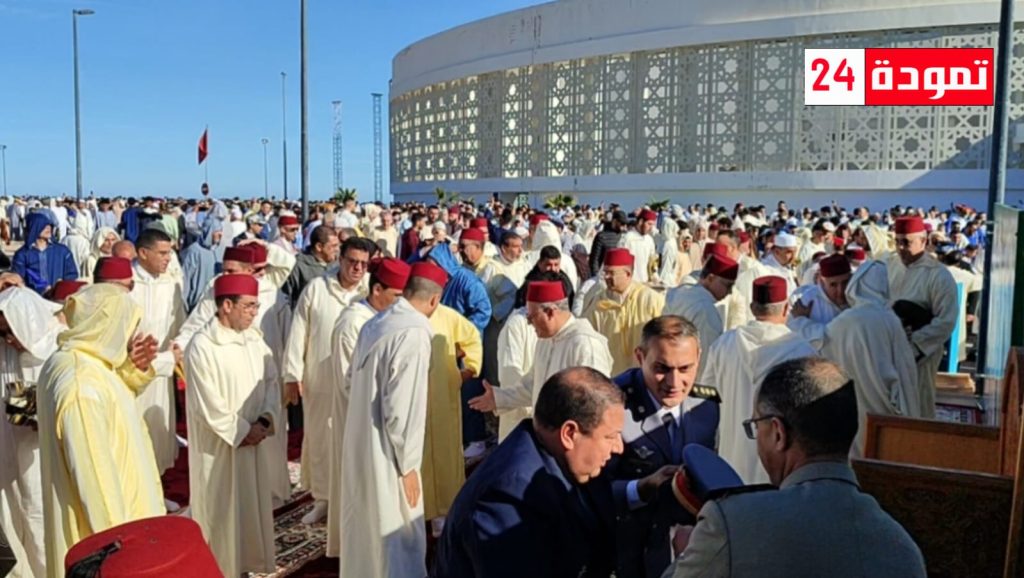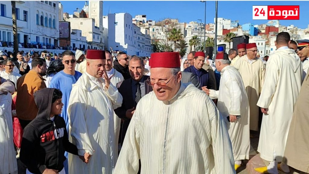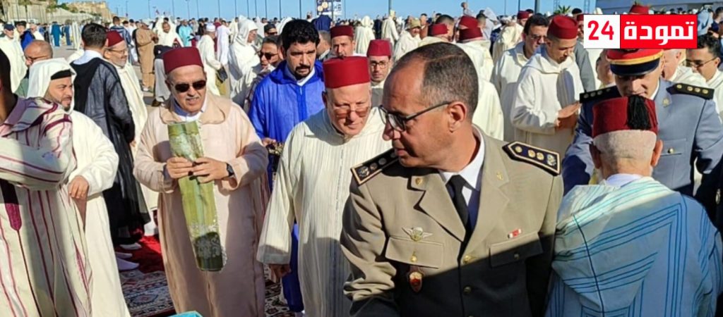 وسط أجواء روحانية مفعمة بالإيمان والخشوع، أدت ساكنة مدينة العرائش شعيرة صلاة عيد الفطر السعيد ، صباح يومه الأربعاء01 شوال 1445هجرية الموافق 10 أبريل 2024 ، بعد توافدها بشكل مكثف صوب ساحة باب البحر المطلة على ضفاف وادي اللوكوس، بحضور السيد عامل الإقليم” العالمين بوعاصم” الذي كان مرفوقا بالسيد باشا المدينة ، السيد رئيس المجلس الجماعي لجماعة العرائش “مومن الصبيحي”،السيد مندوب المندوبية الإقليمية للشؤون الإسلامية بالعرائش ورؤساء المصالح الأمنية، ورؤساء المصالح الخارجية، ورجال السلطة المحلية ومجموعة من المنتخبين وكذا بعض الشخصيات المدنية .