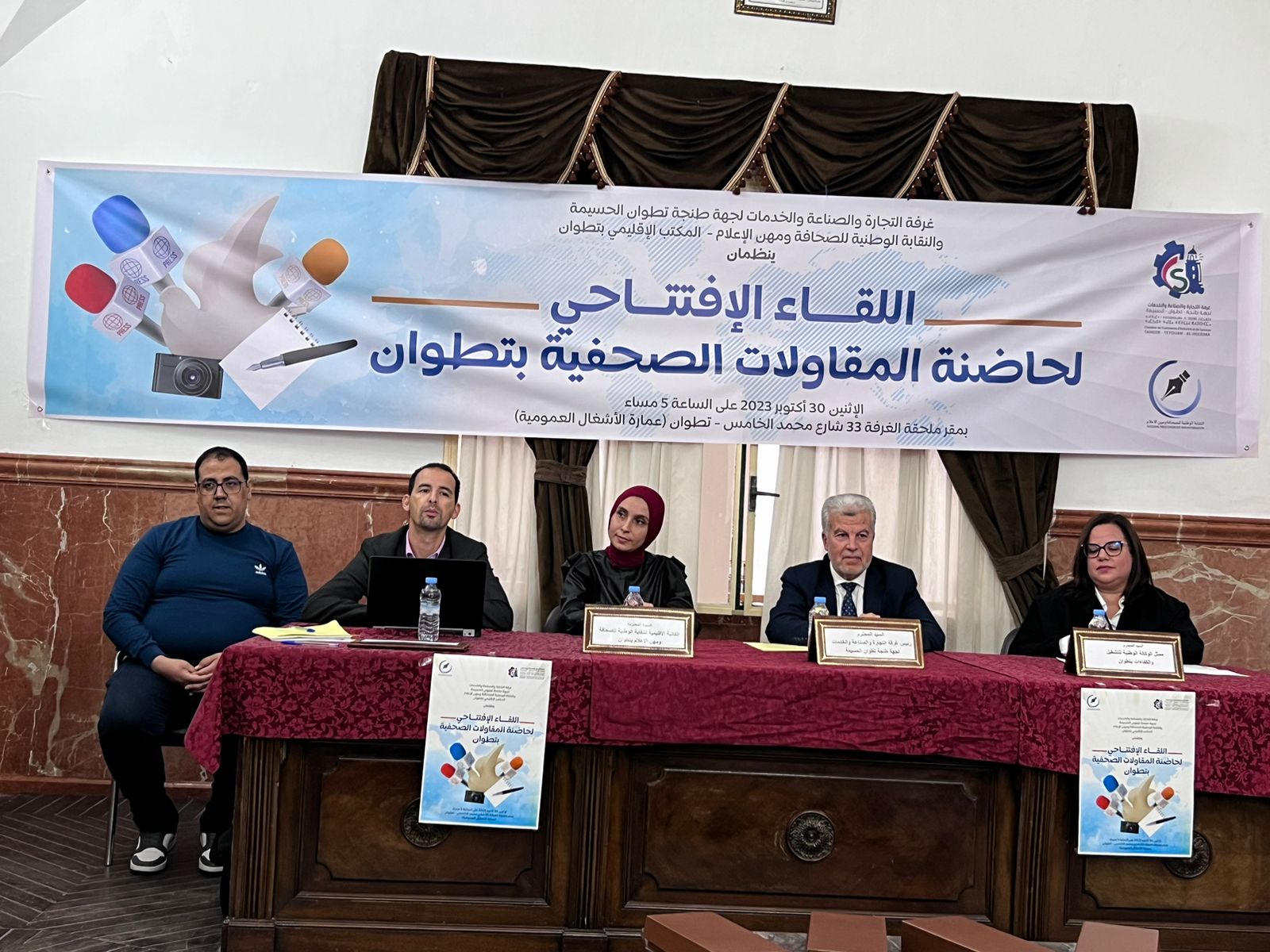 وتميز اللقاء بحضور عبد اللطيف أفيلال، رئيس غرفة التجارة والصناعة والخدمات لجهة طنجة تطوان الحسيمة، وفنة شاكر العلوي، رئيسة المكتب الإقليمي للنقابة الوطنية للصحافة ومهن الإعلام بتطوان وممثلين عن الوكالة الوطنية لإنعاش التشغيل والكفاءات (ANAPEC)، وعدد من الصحافيات والصحافيين من ممثلي وسائل الإعلام الوطنية والجهوية والمحلية.