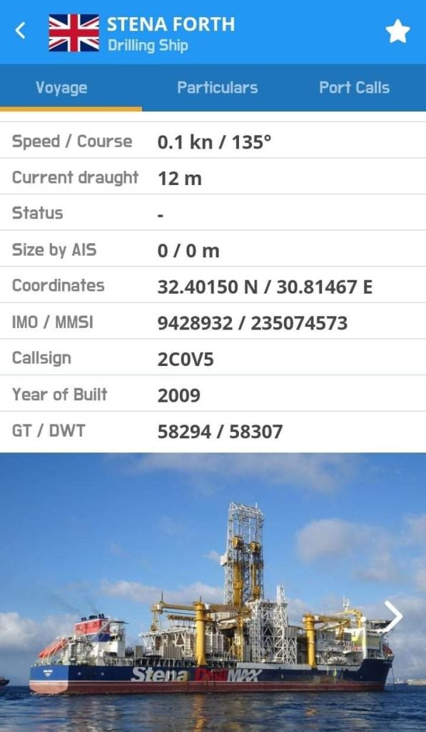 “تصحيح لما روجته بعض المواقع الإلكترونيه حول وصول سفينة “ستينا فورث” إلى سواحل العرائش من أجل استئناف عمليات البحث و الحفرو التنقيب عن الغاز ،والذي نشرناه بدورنا على صفحتنا بحرية ، و بعد التأكد و البحث و التدقيق في مواقع متخصصة في رصد البواخر ، تأكدنا بأن السفينة بعيدة كل البعد عن سواحل العرائش ،و تتواجد حاليا في الموقع 33,40150N / 30,8146E،وبحسب سرعتها المرصودة في الموقع ،فهي راسية في أحد الموانىء خارج المياه المغربية .