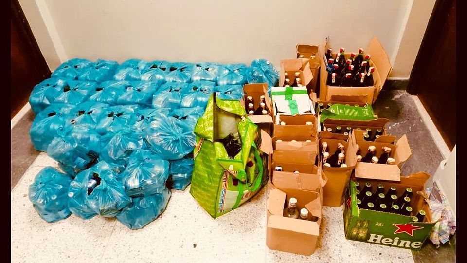 وذكرت مصادر محلية أن ضبط هذه الشحنة التي تتكون من حوالي 500 قنينة خمر، تمت خلال عملية بحث عن شخص مطلوب للعدالة.