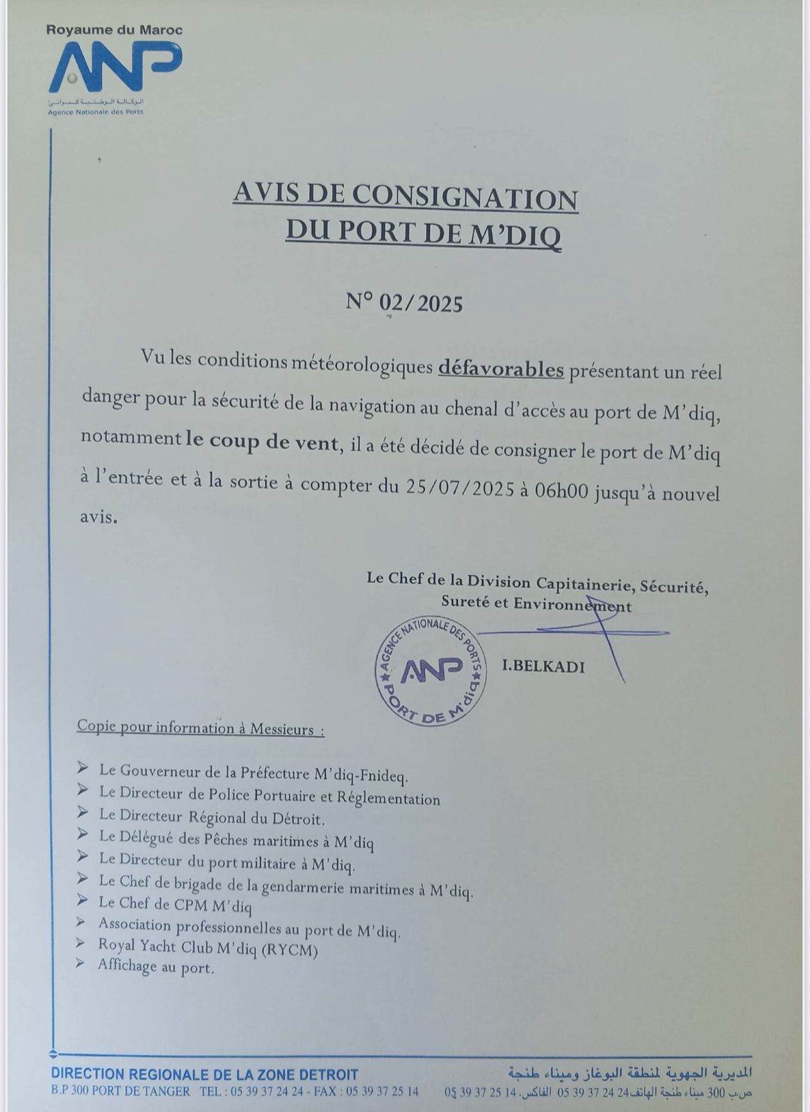 في سابقة خطيرة تهدد حياة المواطنين والمصطافين على حد سواء، تواصل شركة خاصة لكراء الدراجات المائية (jet-skis) – تعود ملكيتها لأحد الأشخاص ذوي الجنسية الجزائرية – أنشطتها الخطرة بشاطئ سانية بلاج، ضاربة عرض الحائط بالقرارات الرسمية الصادرة عن الوكالة الوطنية للموانئ، والتي قضت بتعليق الإبحار بكل من ميناءي المضيق ومارينا سمير ابتداءً من 25 يوليوز 2025 بسبب الرياح العاتية وظروف الملاحة الخطيرة.